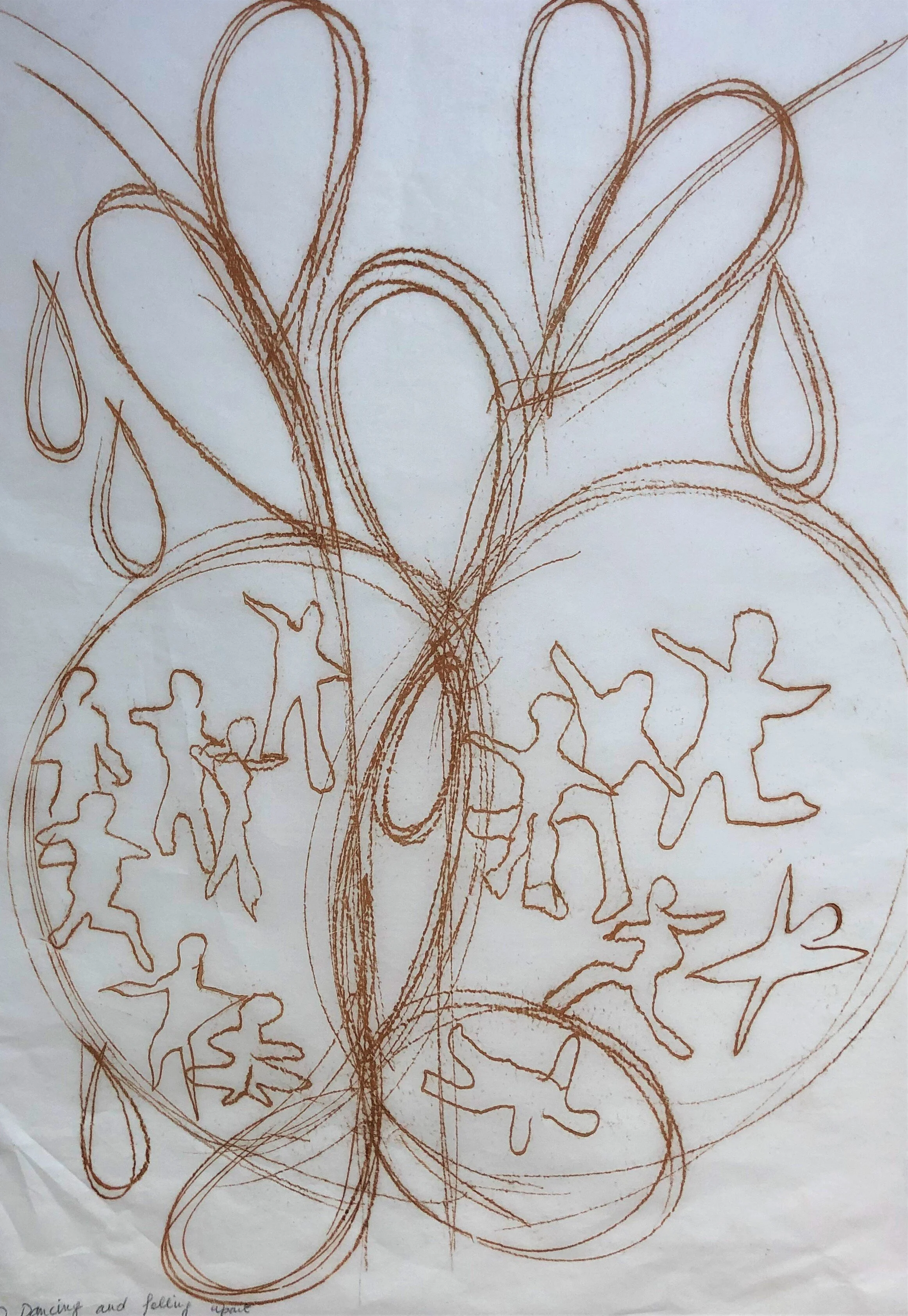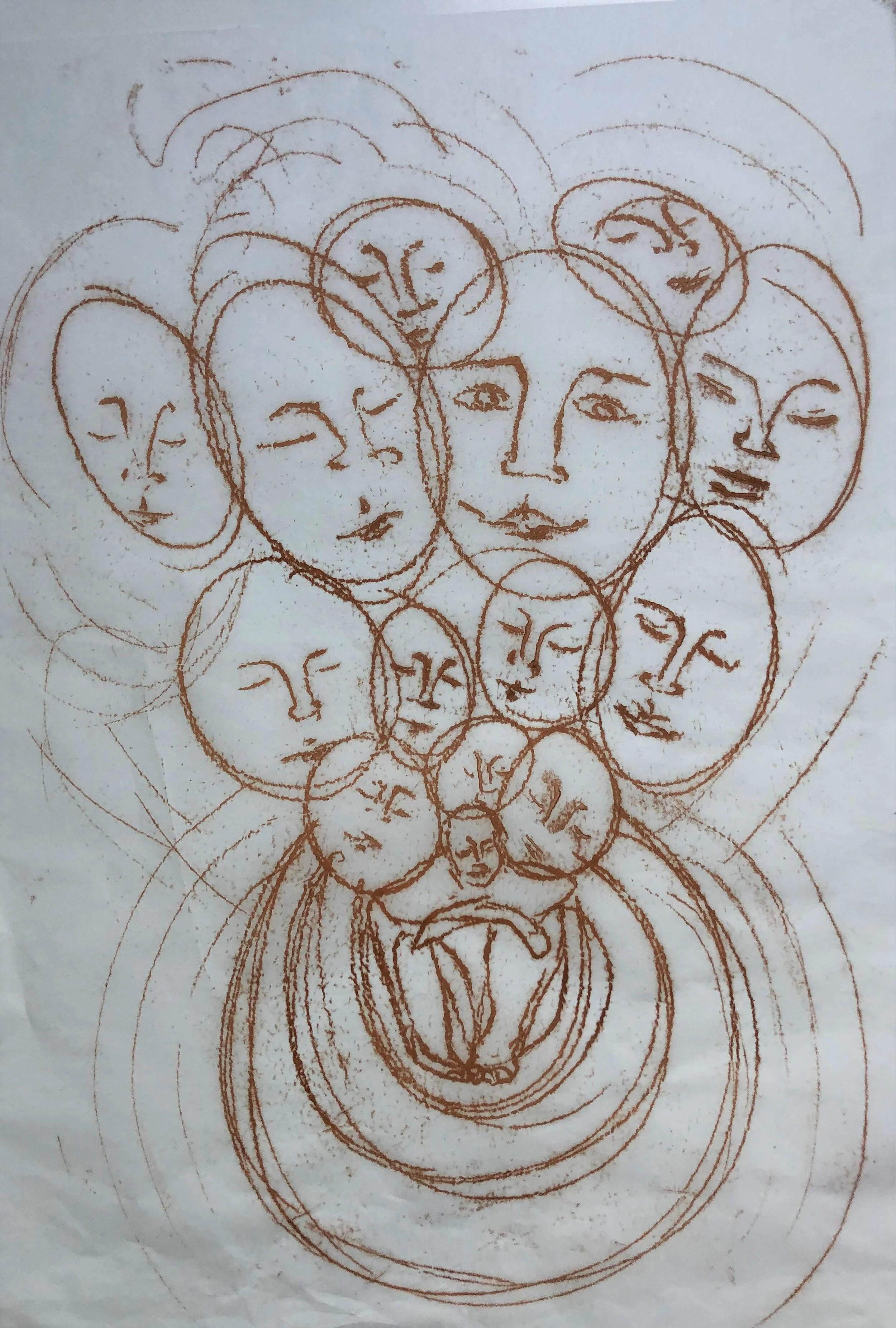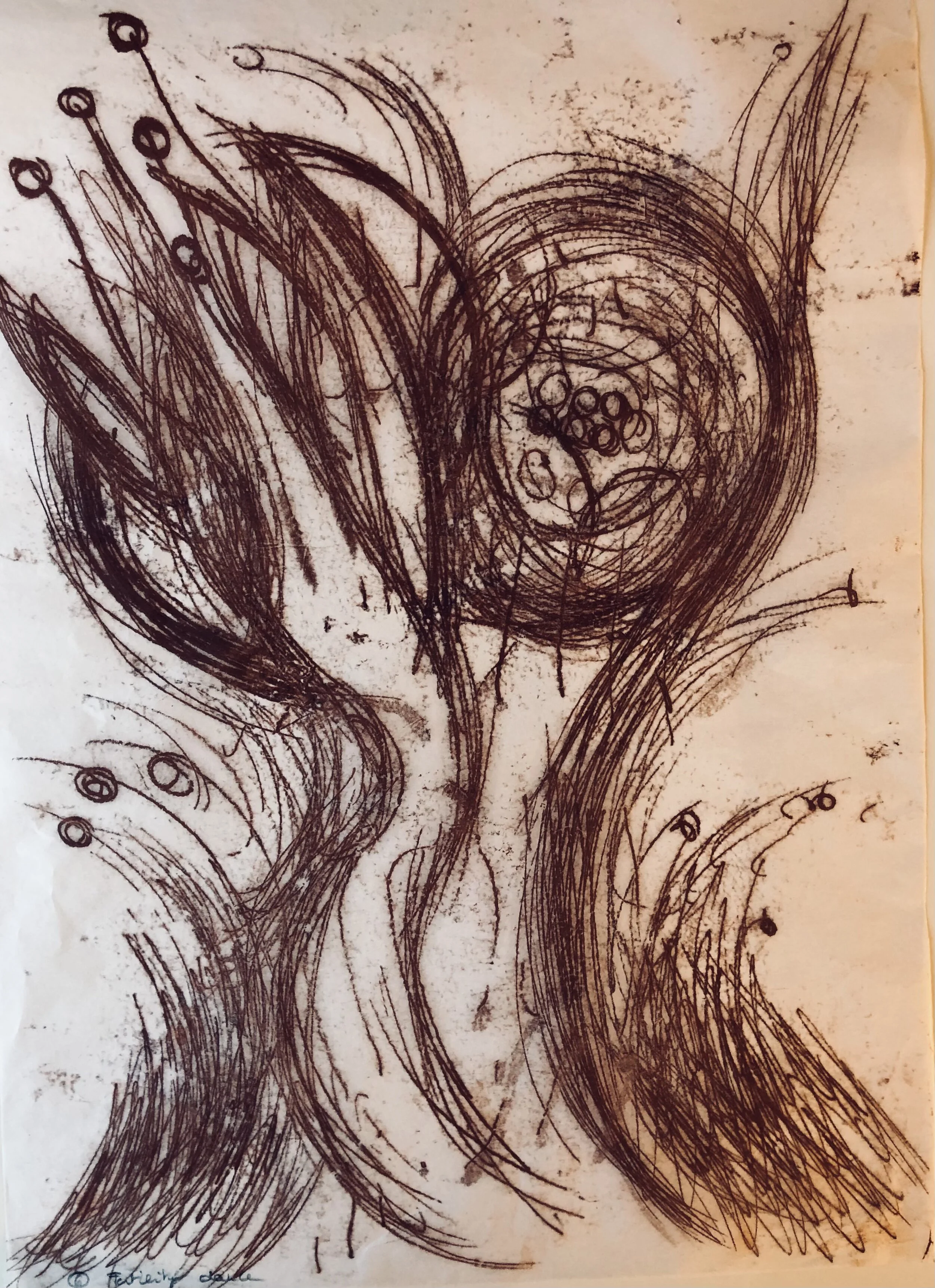 " Touch Drawing is a simple yet profound process where fingers take the place of pen or brush. Paper is placed over a freshly inked surface and, wherever it is touched, an imprint is made on the back side. Many drawings can be created in one session, each a stepping stone to the next, guiding one deeper and deeper into the self. Even those who believe they cannot draw find Touch Drawing to be a powerful and fulfilling experience. "