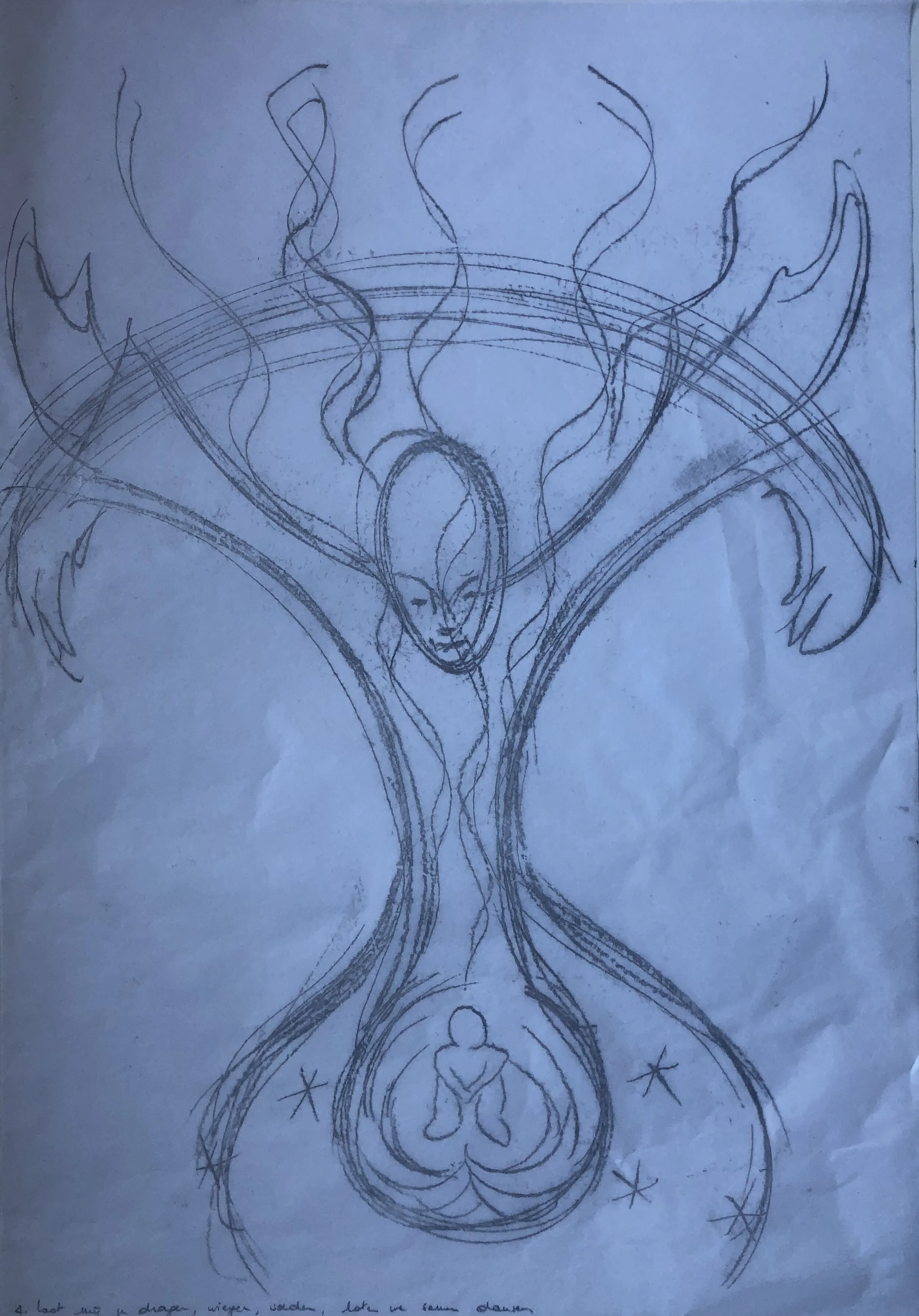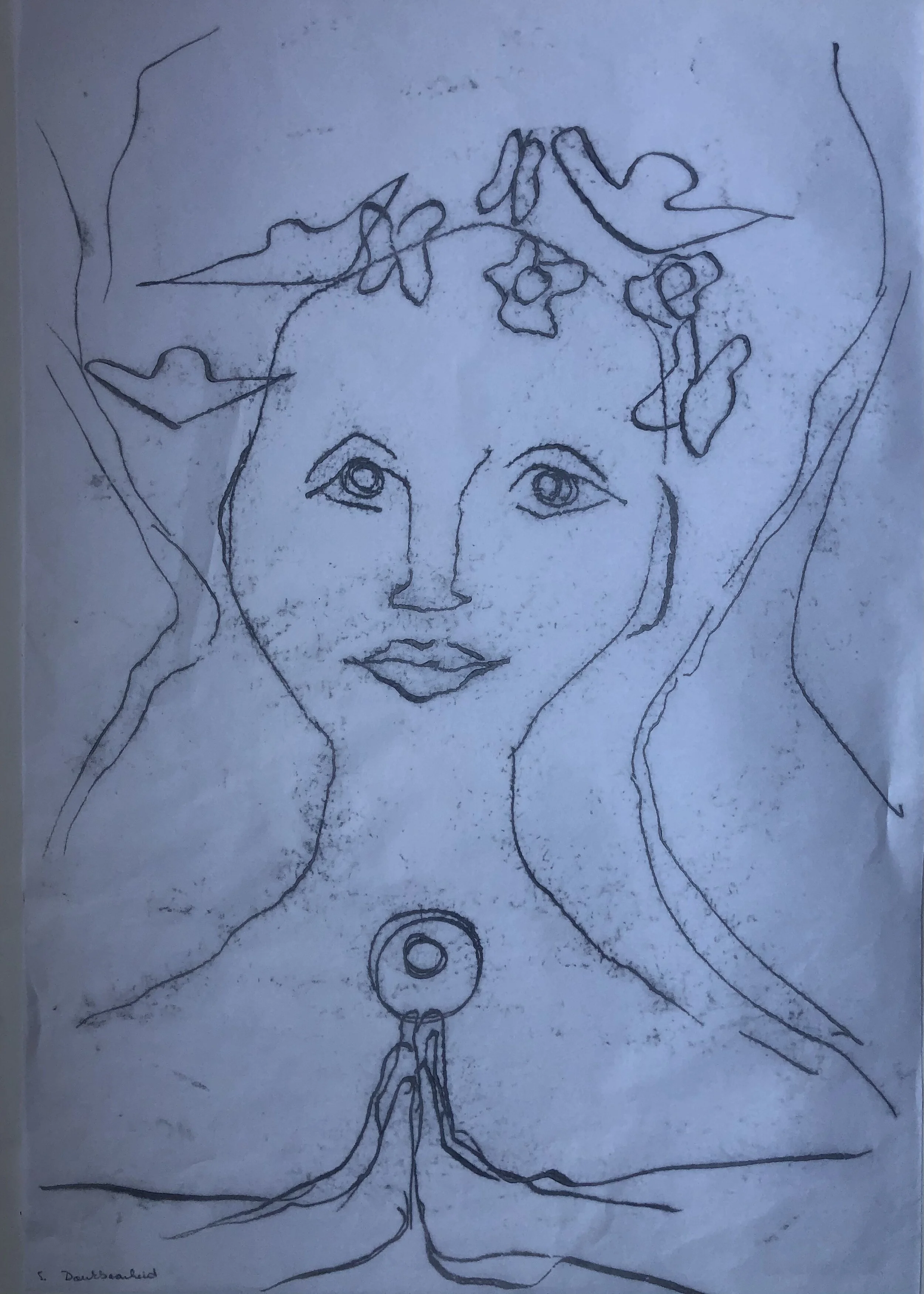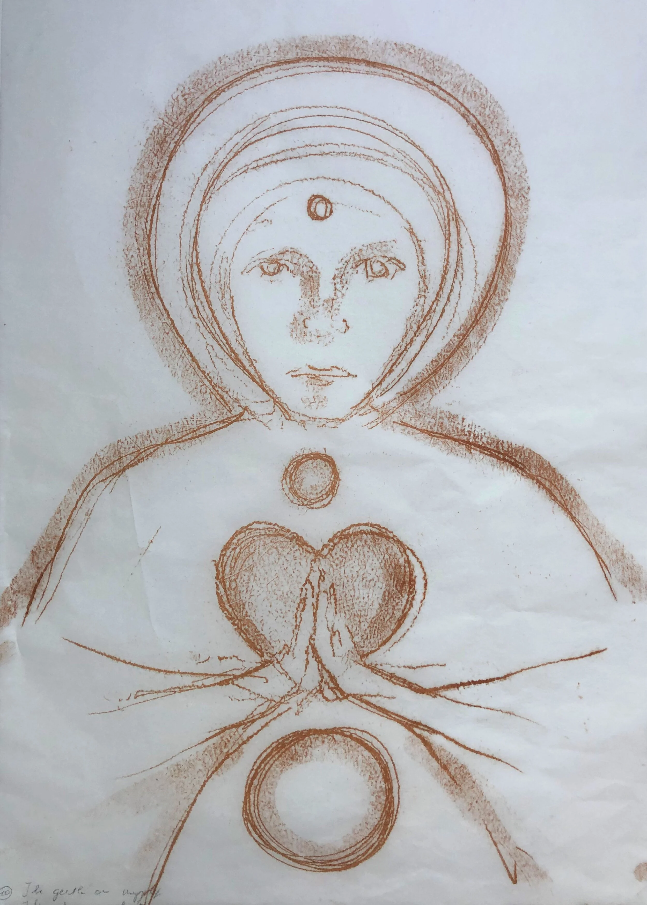 " Touch Drawing is a simple yet profound process where fingers take the place of pen or brush. Paper is placed over a freshly inked surface and, wherever it is touched, an imprint is made on the back side. Many drawings can be created in one session, each a stepping stone to the next, guiding one deeper and deeper into the self. Even those who believe they cannot draw find Touch Drawing to be a powerful and fulfilling experience. "